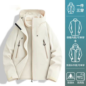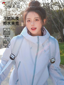 啄木鸟冲锋衣女男同款新款秋三合一户外小个子巨好看旅游夹克外套