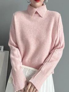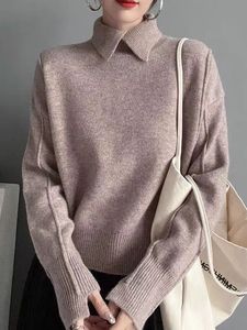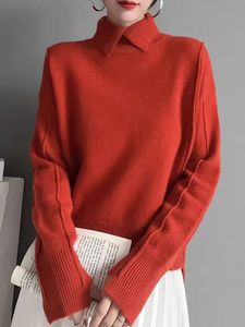 羊绒毛衣女纯色春秋欧洲站翻领宽松内搭针织打底衫高领宽松上衣百