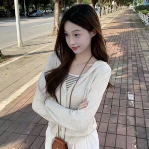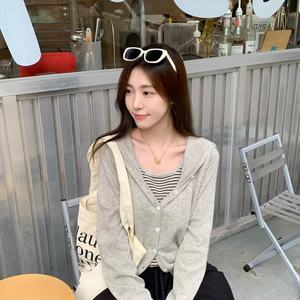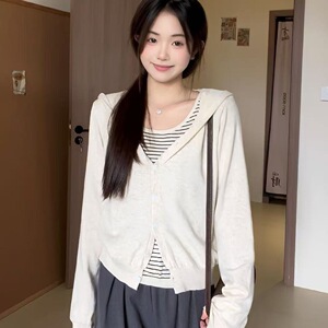 休闲设计感叠穿连帽假两件长袖上衣秋季韩版复古别致宽松针织衫女