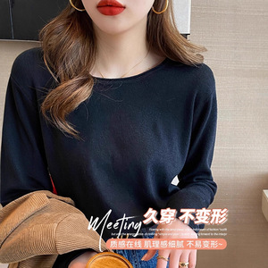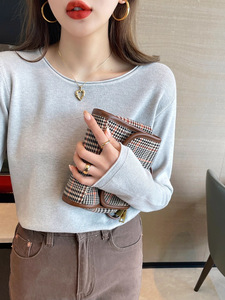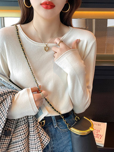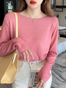 圆领打底衫女杏色宽松上衣2025新款内搭春秋装针织长袖可外穿