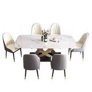 意式岩板餐桌椅组合现代简约长方形大小户型轻奢高端家用吃饭桌子