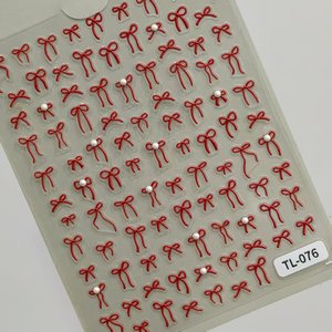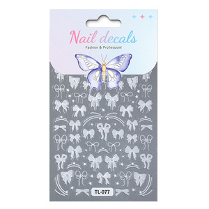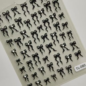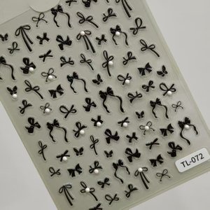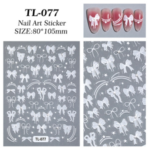 珍珠蝴蝶结美甲贴纸5D浮雕立体蕾丝飘带蝴蝶结指甲贴纸饰品 TL款