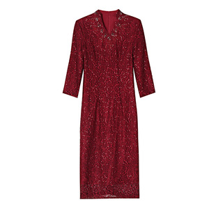 qwfs7706喜婆婆婚宴装礼服裙2025秋季新款气质绣花酒红色连衣裙女