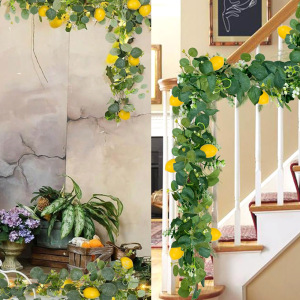 仿真人造假绿植尤加利桉树叶柠檬藤条 仿真藤蔓藤条门挂壁挂装饰