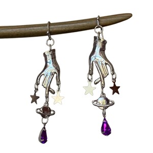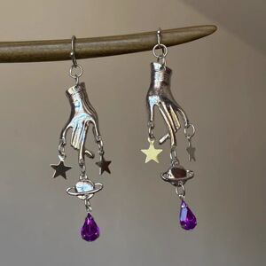 韩国东大门双耳洞连体耳扣日韩个性五角星滴胶耳饰简约锆钻耳环女