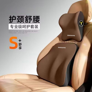 舒适汽车头枕腰靠套装跨境记忆棉护颈高级感车内专用靠枕腰部支撑