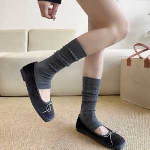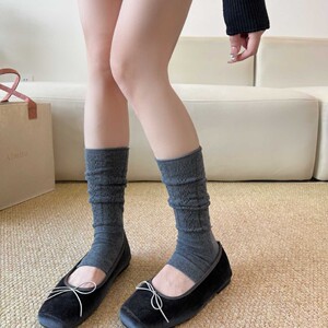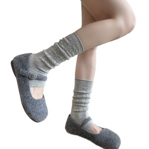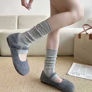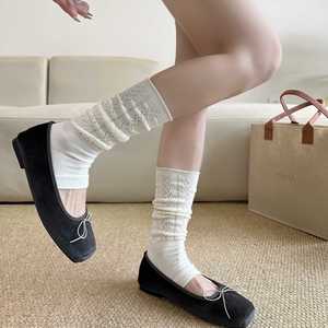 袜套堆堆袜女miu系踩脚腿套灰色小腿袜镂空暗纹长筒袜韩系简约风