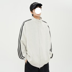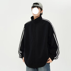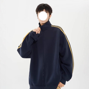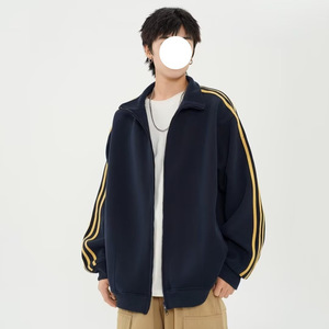 潮三条杠开衫卫衣男秋款美式撞色条纹夹克外套痞帅宽松情侣棒球服