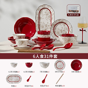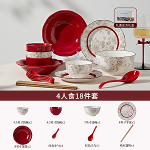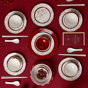 法式玫瑰订婚餐具结婚新婚礼物碗碟套装送新人乔迁新居碗盘碟套装