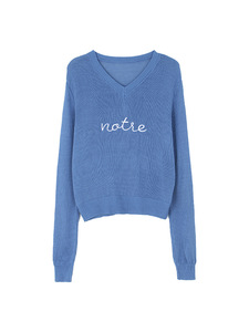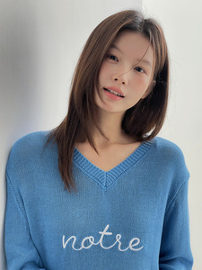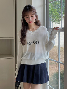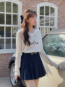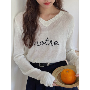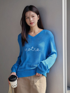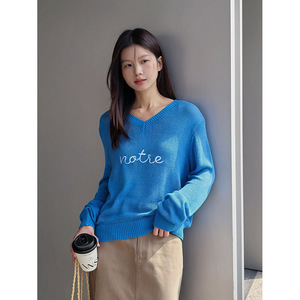 【歌铭】韩系通勤V领字母针织衫女2025秋季新款宽松长袖上衣N767B