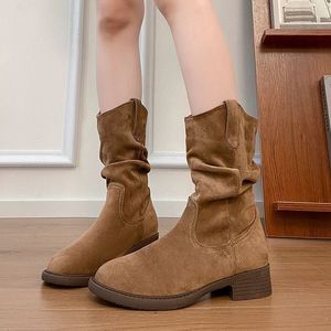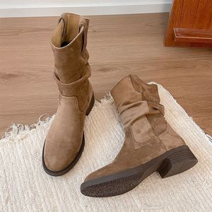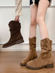 卡其色厚底马丁靴子女士2025新款绝绝子秋季超火美拉德西部牛仔靴