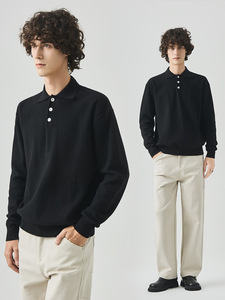 APO男装|跨境男士毛衣秋季老钱风简约宽松翻领POLO长袖针织衫内搭