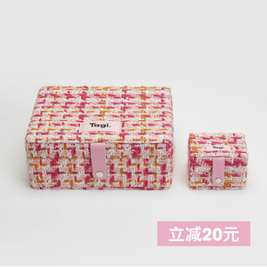 Tagi.首饰枕头提花首饰盒大容量复古便携mini双层子母收纳盒