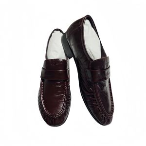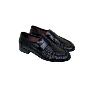 复古英伦风男女小皮鞋高端品质仿鳗鱼纹真皮褶皱乐福鞋一脚蹬单鞋