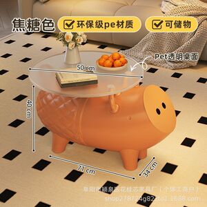 焦糖色小猪茶几+透明茶几盘