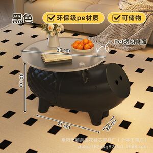 黑色小猪茶几+透明茶几盘