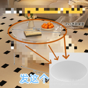 奶白色小猪茶几+透明茶几盘