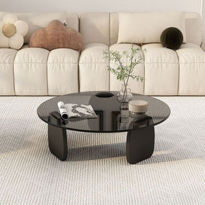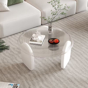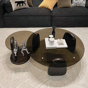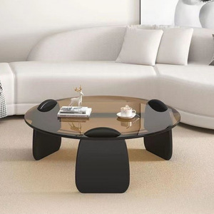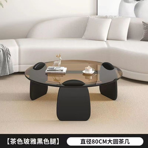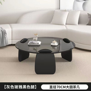 圆形茶几客厅家用小户型轻奢现代茶桌简约创意钢化玻璃茶几桌组合