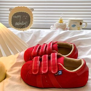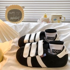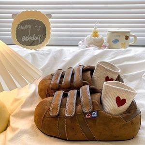 复古磨砂大头板鞋女2025秋季新款平底内增高低帮运动鞋休闲德训鞋