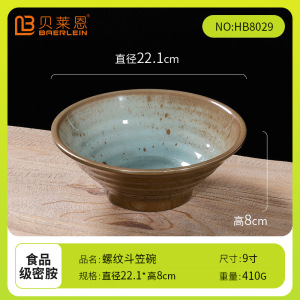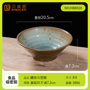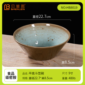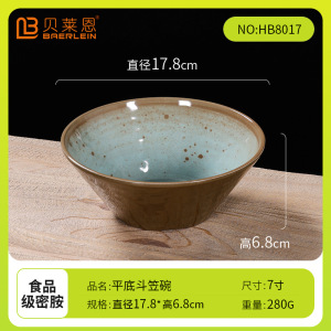 米饭碗日式平底斗笠碗密胺碗批发仿瓷色釉塑料碗商用拉面大碗餐具