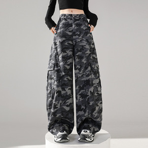 实拍秋新款全棉洗水美式迷彩弯刀裤时尚高腰阔腿休闲工装裤