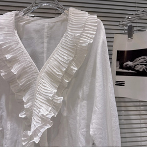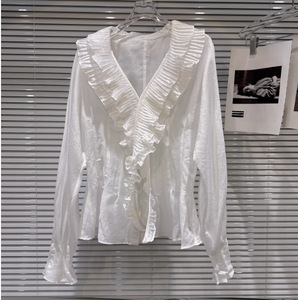 2025秋季新款法式甜美褶皱荷叶领设计轻薄长袖衬衫衬衣女