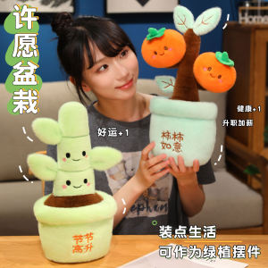 创意新款许愿盆栽毛绒玩偶节节高升柿柿如意寓意摆件送朋友装饰礼