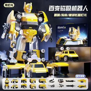 黄色磁力变形机器人【收纳盒装-带灯光】