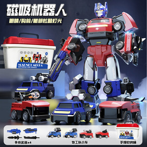 儿童磁力拼接变形磁力机器人汽车人拼装玩具益智男孩玩具礼物套装