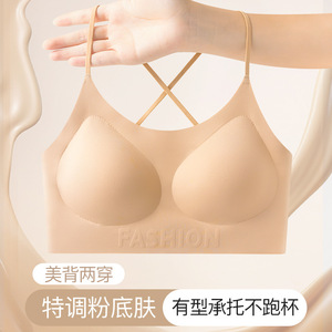 【粉底液内衣】细肩带柔软承托聚拢文胸欧若风隐形美背文胸无痕轻