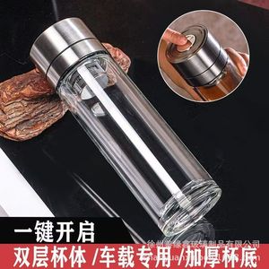 新款升级一键速开玻璃杯商务车载便携提绳隔热大容量可砸钉水杯