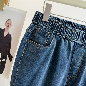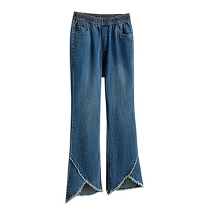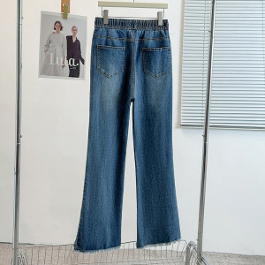 早秋松紧腰裤脚磨毛微喇长裤胖MM300斤加大码高腰时尚显瘦牛仔裤