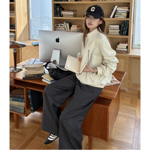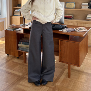 实拍2025秋冬新款深灰色西装裤休闲百搭垂感低腰阔腿裤直筒西裤女