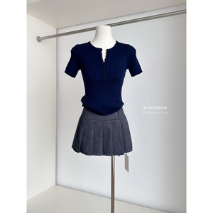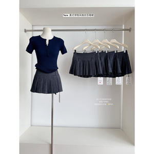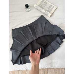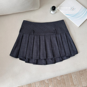 美式甜酷辣妹学院风灰色个性格纹百褶裙防走光A字迷你半身裙