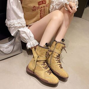 复古厚底马丁靴女外穿2025秋季新款休闲百搭系带增高德训中筒短靴