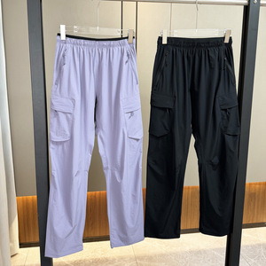 0819x9~山系户外通勤宽松简约显瘦口袋刺绣松紧腰软壳休闲长裤女