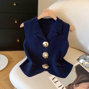 广州十三行高货爆款~立体贝壳扣针织马甲背心女法式v领无袖上衣夏