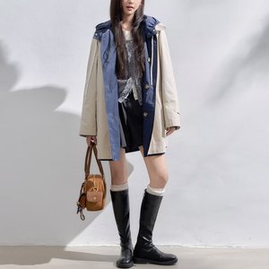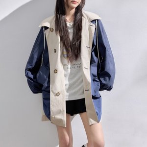 慵懒风中长款外套女2025秋冬新款欧洲站双面穿宽松撞色夹克上衣潮