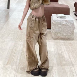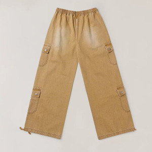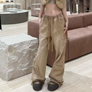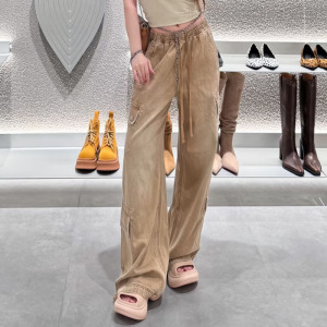 SMFK十字雕像高塔牛仔运动裤棉质复古丹宁宽松抽绳工装休闲阔腿裤