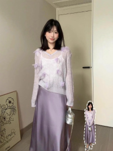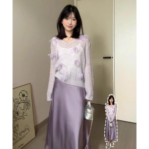 紫色半身裙子醋酸姐系贵感夏日绝美套装气质韩系一整套ootd轻熟风