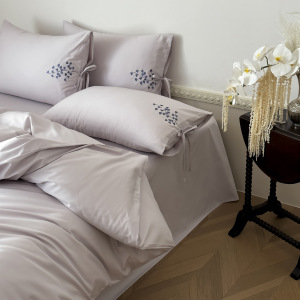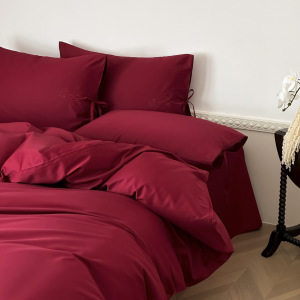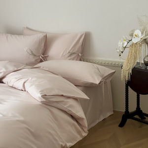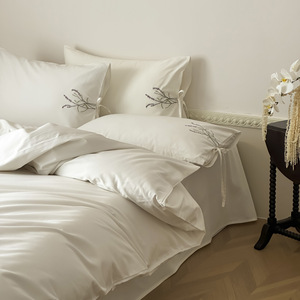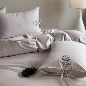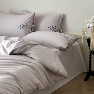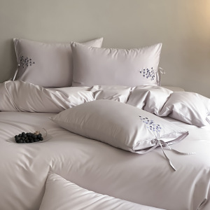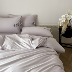 少女感紫色100S高支全棉四件套花卉刺绣纯棉被套1.51.8床单三件套