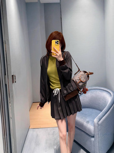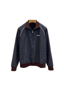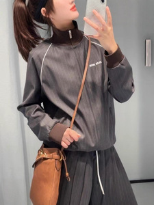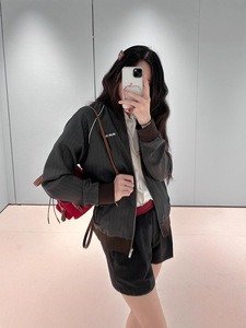 2025早秋新款南油女装miu风撞色螺纹领拉链高级灰条纹夹克外套女