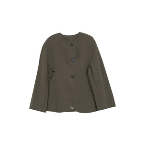 万为 老钱风圆领西服女2025秋季新款无领收腰单排扣西装外套P3710