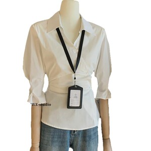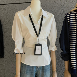 WGWE6921韩系polo领衬衫七分袖修身收腰衬衣设计感显瘦气质上衣
