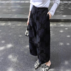 爆款南油高端早秋新款高腰花苞提花阔腿裤宽松版女装 垂感显瘦款