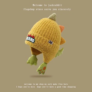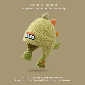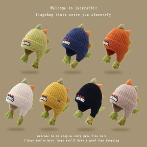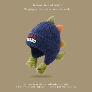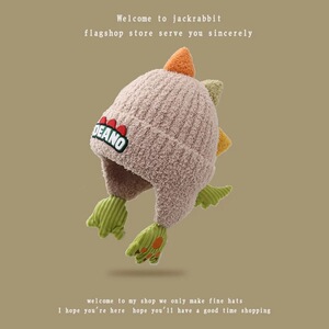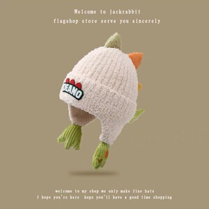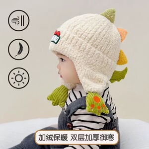 宝宝帽子冬加厚护耳帽可爱立体恐龙针织套头帽儿童防风加绒保暖帽