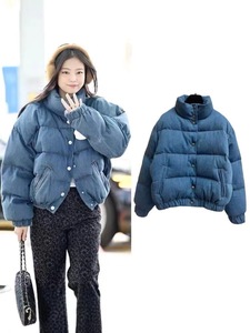 现货金珍妮同款牛仔蓝色棉服女25冬季小个子短款立领外套棉衣棉袄