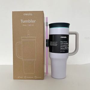 新款Owala双层真空保温杯40oz汽车杯 户外运动健身车载冷热吸管水