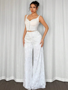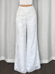 跨境显瘦高腰阔腿裤 宽松美式白色垂感薄款小个子女休闲阔腿裤