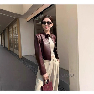 2025秋季进口赫本山羊皮真皮皮衣外套女短款洋气小个子机车皮夹克